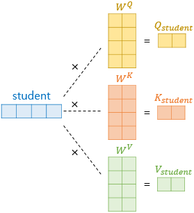 "student"라는 단어벡터에서 Q, K, V를 얻는 과정