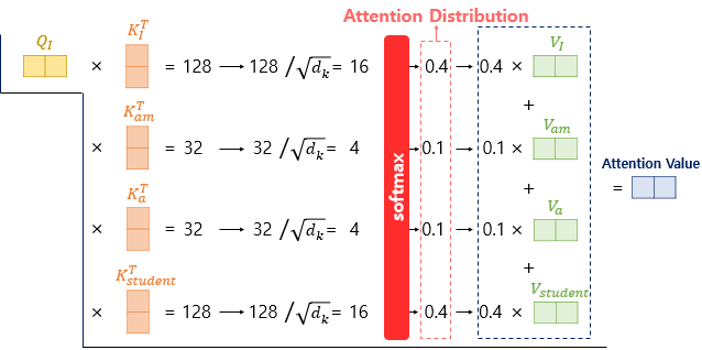 Query, Key, Value에 따라 집중(=Attention)하는 부분이 달라지게 된다.
