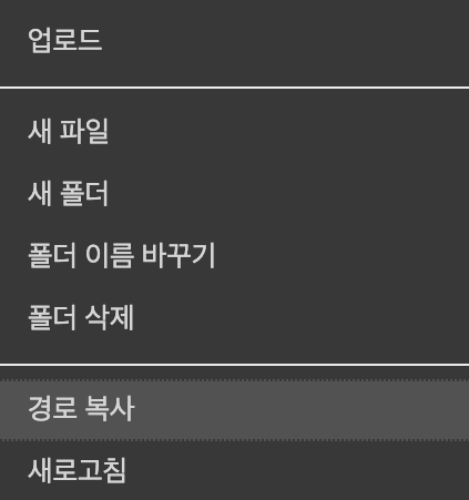 추후 Github 연동을 위한 경로도 복사해 두기 (Mount 된 Google drive 디렉토리 구조에서 마우스 우클릭 후 "경로 복사" 선택)